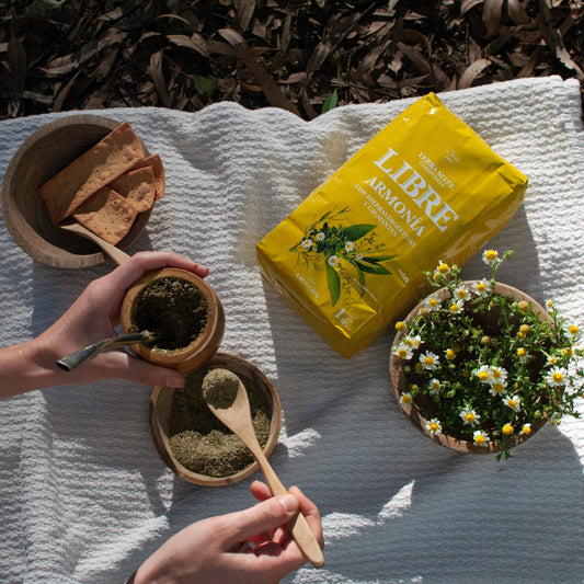 Yerba LIBRE ARMONIASumérgete en una experiencia de tranquilizadora armonía con nuestra Yerba LIBRE ARMONIA. Su fórmula única, rica en propiedades digestivas, te ayudará a equilibrar tu organismo y disfrutar de momentos de calma. Perfecta para esas pausas que tu cuerpo y mente necesitan, esta yerba mate artesanal te invita a desconectar y sentirte bien.
